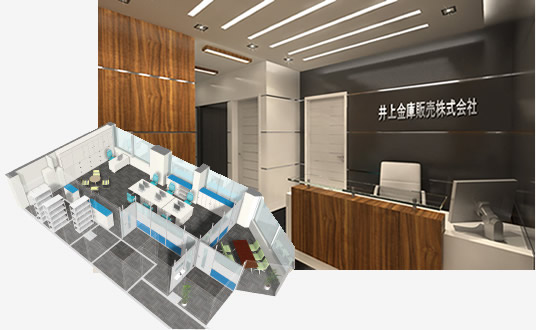即日図面作成、ご提案を致します。機能的かつデザイン性の高いオフィスをフルサポート。空間を大事にしたインテリア、エクステリア、ロゴをトータルに演出します。